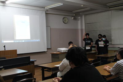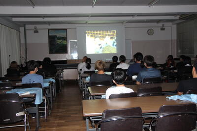 藍染めに至る過程や、生徒の作品などをスライドショーで振り返りました。