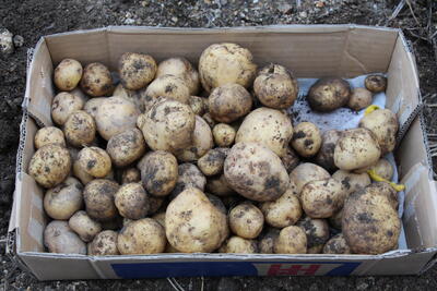 収穫したじゃがいもは7月のエシカルプロジェクトで使用します。