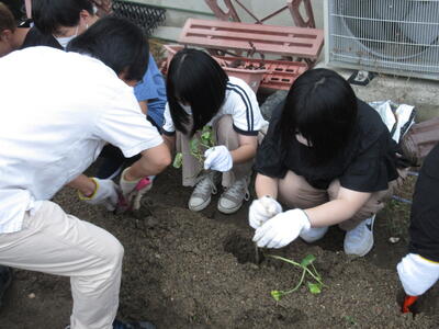 6月24日(月)、1年生がサツマイモの苗植えを行いました。