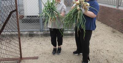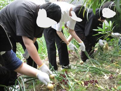 5月24日(金)に2年次生がタマネギの収穫を行いました。